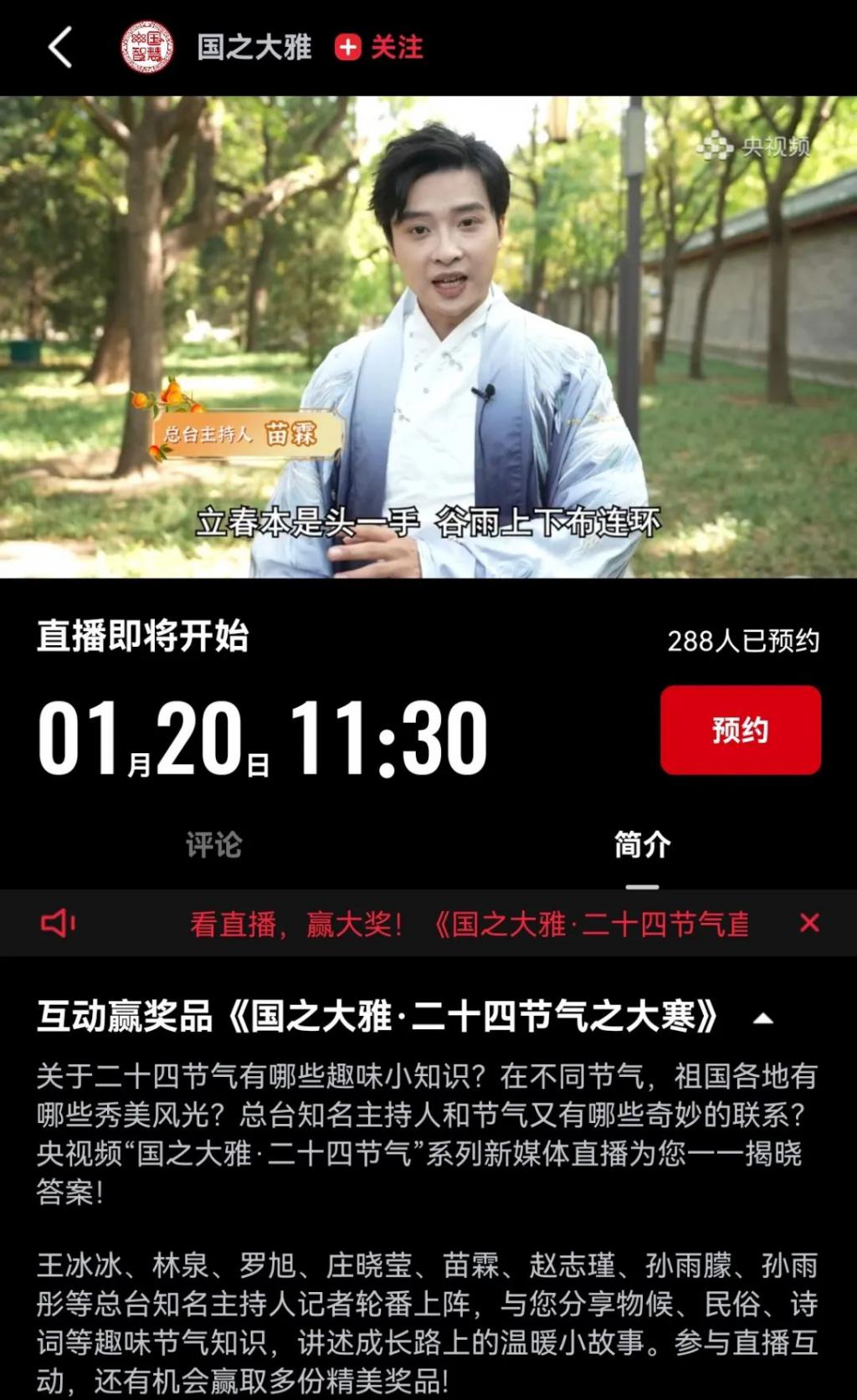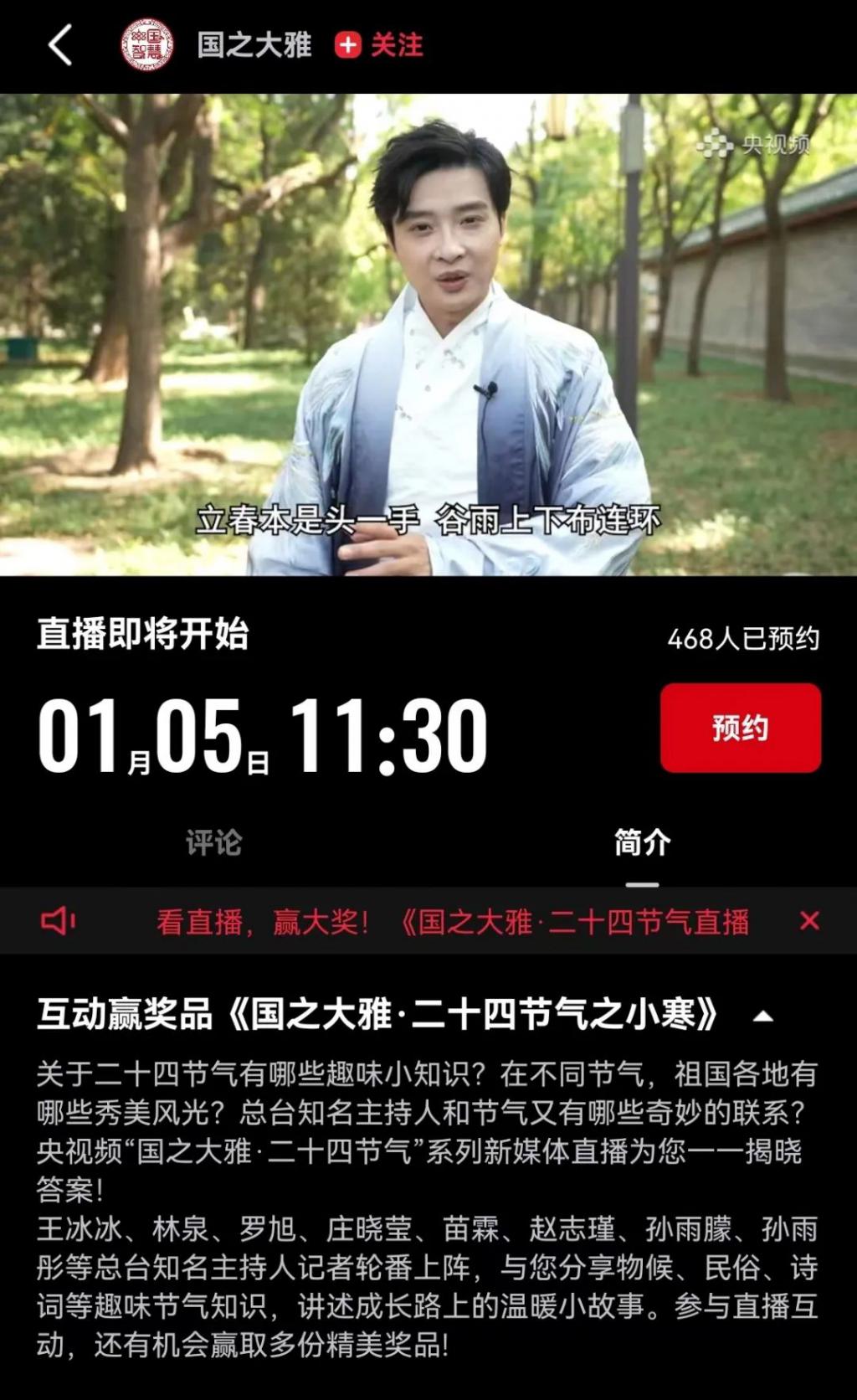今日,有细心的网友发现在央视频《国之大雅》系列节目中关于小寒篇和大寒篇的简介里有王冰冰的名字。
