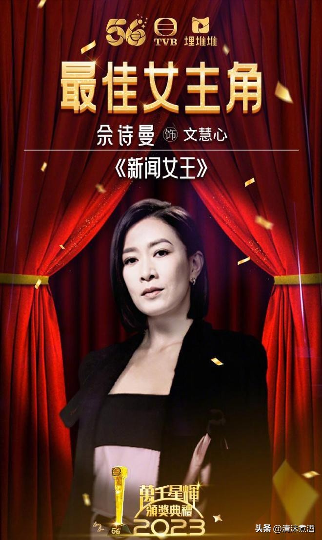 佘诗曼可谓TVB颁奖典礼的资深选手,早年曾与黎姿等人争夺视后殊荣。如今,黎姿已经淡出娱乐圈,而佘诗曼依旧笑傲TVB。《新闻女王》中的文慧心角色更是由她演绎得淋漓尽致,实至名归地获奖。