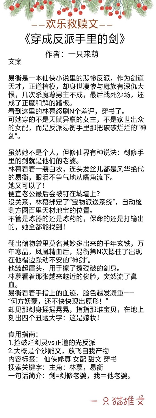 沙雕穿书修真文,开篇就笑死我了。女主穿越成大反派的剑灵,一天天挺无聊就在空间里面嗑瓜子。然后大反派干架的时候,把剑挥出去救下了同门师弟,导致女主手里的瓜子皮一个踉跄全洒了出去。小师弟惊呆了,一向高冷的师兄居然有如此接地气的爱好,大反派以为那瓜子是师弟的,淡定地说记得清扫干净。两个人皆以为瓜子皮是对方的,鸡同鸭讲笑死我了