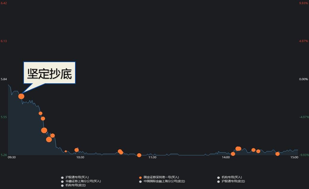坚定的买入该股明显不是打板。但是买过之后一路大阴线。说明他对这个股票的逻辑是深信不疑的。在跌停板买入800w。后面的走势我们可以看到。5.25的价格买入。后面最高涨到5.45。跌停板买入是赚钱的。所以他的回撤会非常小。房地产板块是不太好。但是改建还可以。要说房地产板块有可能业绩转好的估计也就只有改建概念了。所以该股买入也没啥问题。