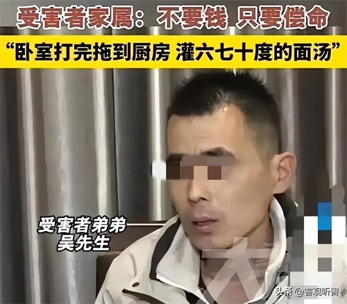 由于面馆刚刚关门,旁边的面汤还未放凉,于是便端了一盆六七十度的面汤倒在了吴某莉头上,最终导致其窒息而亡。