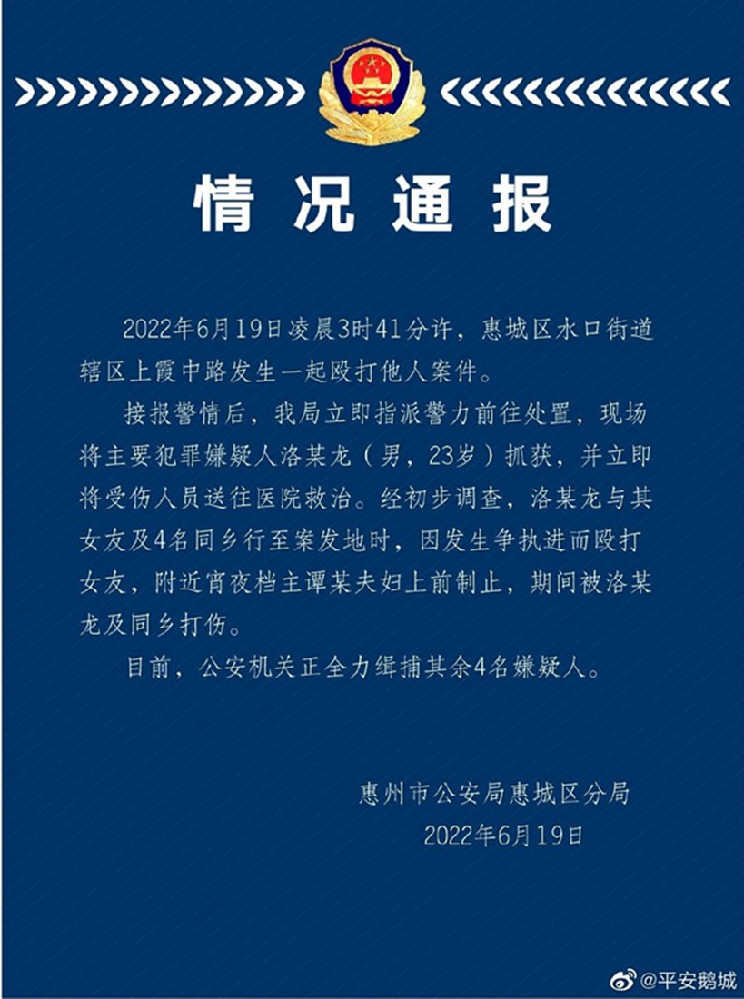 在广东惠州一家工业园区附近的烧烤摊店,老板这个时候都快收摊了,突然听到外面有响声,店老板冲出去一看,原来是四个大男人正在无差别的殴打一个女人