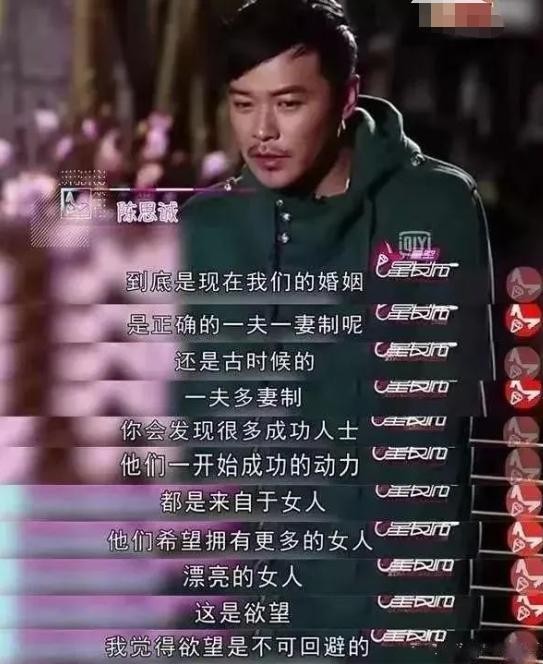 这件事还不要紧,陈思诚之后的言论更加令人愤怒,他在采访中表示:”每个男人都会出轨,即使身体不出轨,心灵也会出轨,我不相信男人见到漂亮的女人会不动心,那是骗人的事情,一夜情比比皆是,而且有很多的一夜情可能比我们想象的更不堪,或者更幸福。“