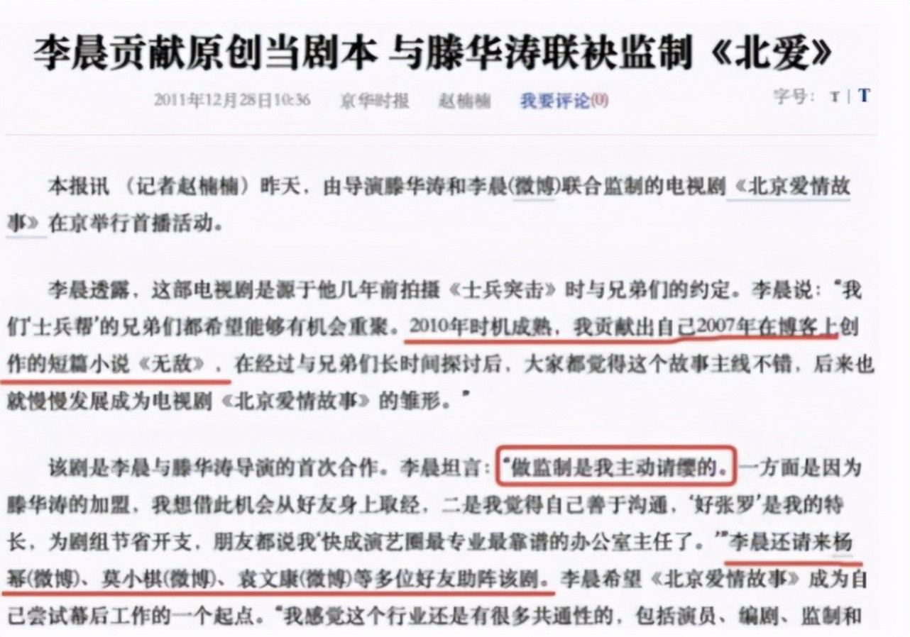 李晨为陈思诚提供了自己在博客上创作的短篇小说《无敌》,大家都觉得这个故事主线不错,后来慢慢地发展成为了电视剧《北京爱情故事》的雏形。