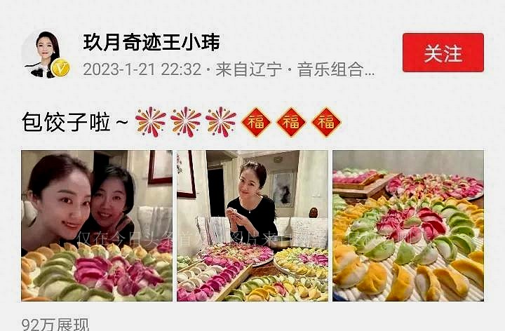 除夕这一天晚上,王小玮晒出了与家人包饺子的照片,饺子五颜六色的特别好看,引来了网友的一片夸赞。人们不仅欣赏她的颜值和气质,还对她包饺子的手艺赞不绝口,纷纷表示羡慕。然而,仔细观察照片时,人们发现了一个令人困惑的细节。