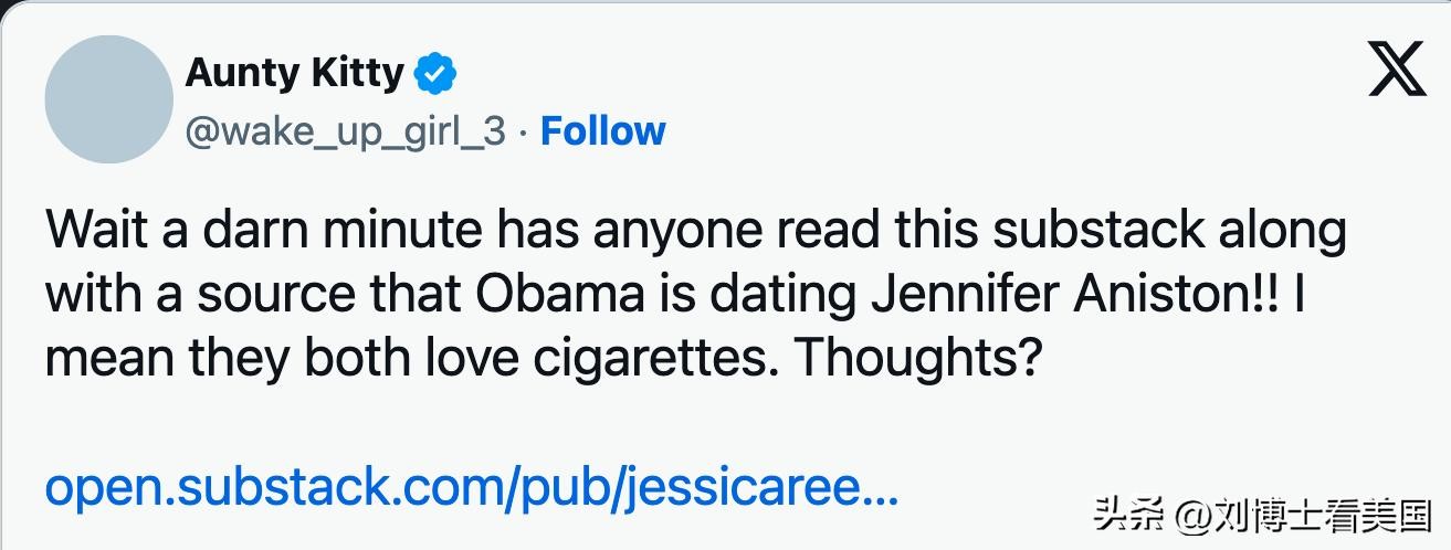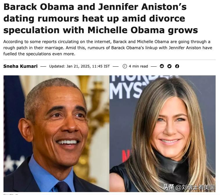 据报道,关于奥巴马和安妮斯顿之间浪漫关系的报道始于几年前。一家杂志发表了一篇题为《关于Jen和Barack的真相》的封面故事,声称他们在2007年的一次好莱坞活动中短暂相遇。