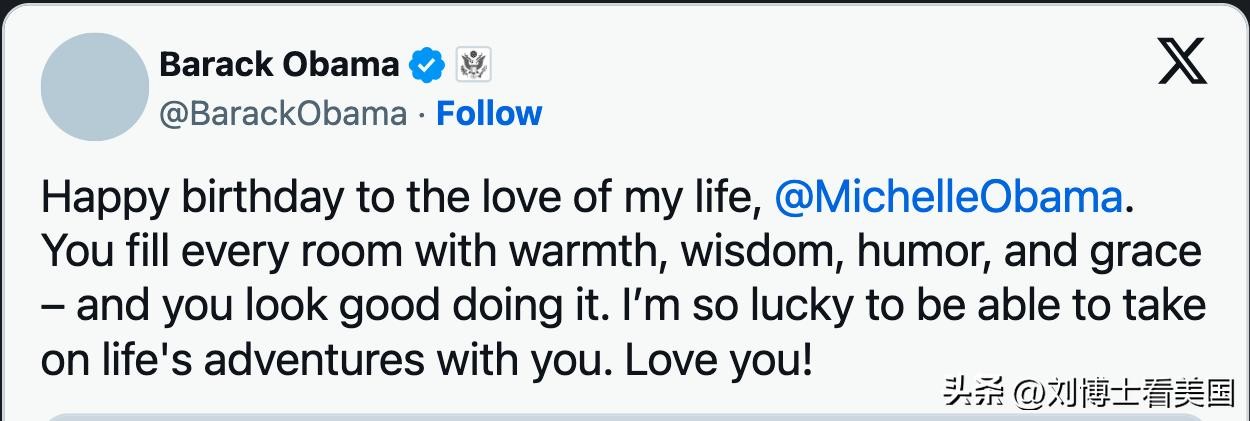 奥巴马似乎也知道了相关的猜测。在 Instagram 发了一则帖子,祝米歇尔的生日。在帖子中,他称她为“他一生的挚爱”,许多人将其解读为试图平息流言蜚语并重申他们的关系。