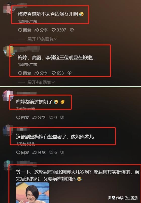 对此,许多观众表示:“梅婷真的不适合演女儿啊,毕竟她已经当过奶奶了。”