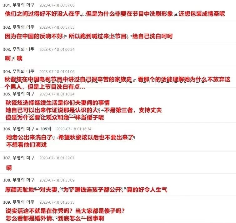 韩国网友对秋瓷炫的宽容表示不解,认为她太过软弱,甚至有人呼吁她退出娱乐圈。而于晓光则被批评为卖惨、不负责任。这些负面评价无疑给他们的星途蒙上了阴影。