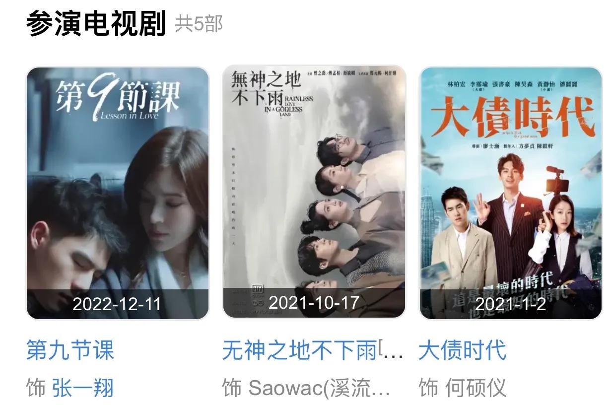 2018年在《你的孩子不是你的孩子》中出演高中生钟国衍,获得第54届台湾电视金钟奖迷你剧集新进演员提名。2019年在《我们与恶的距离》中饰演应思德。2021年电影《复身犯》中饰演林子平。