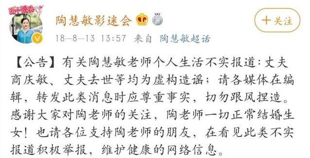 但是这个时候,陶慧敏的影迷会公开辟谣,这是不实传言!
