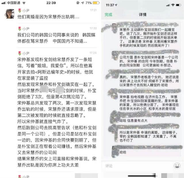 6月29日,双宋夫妻的离婚进一步发酵,网络上曝出大量两人离婚的“真实原因”,远没有经纪公司曝光的“性格不合”这么简单,据最新消息称,宋慧乔怀孕时间对不上,宋仲基很可能被绿了。