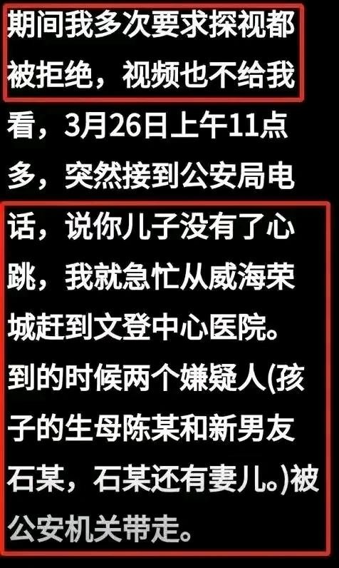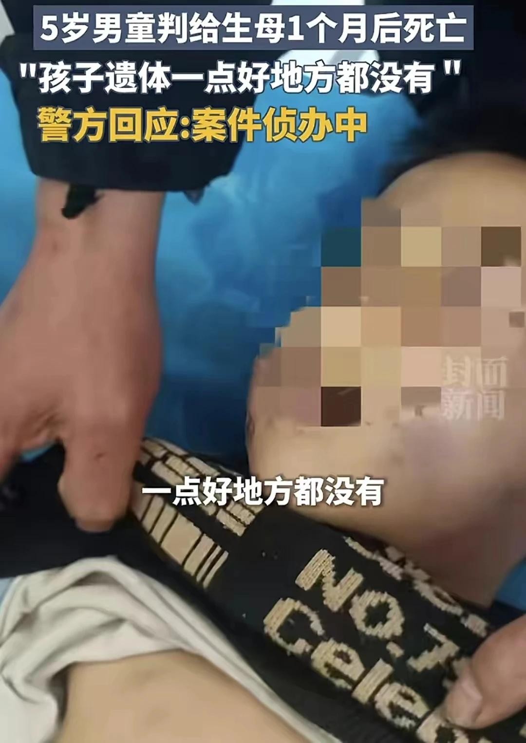 警方提供孩子调查结果令人发指,他们发现孩子身上没有一处好地方,到处都是乌青和伤痕。其孩子父亲称孩子母亲并不让探望孩子,甚至打视频也不让,根本了解不了孩子的生活状况。