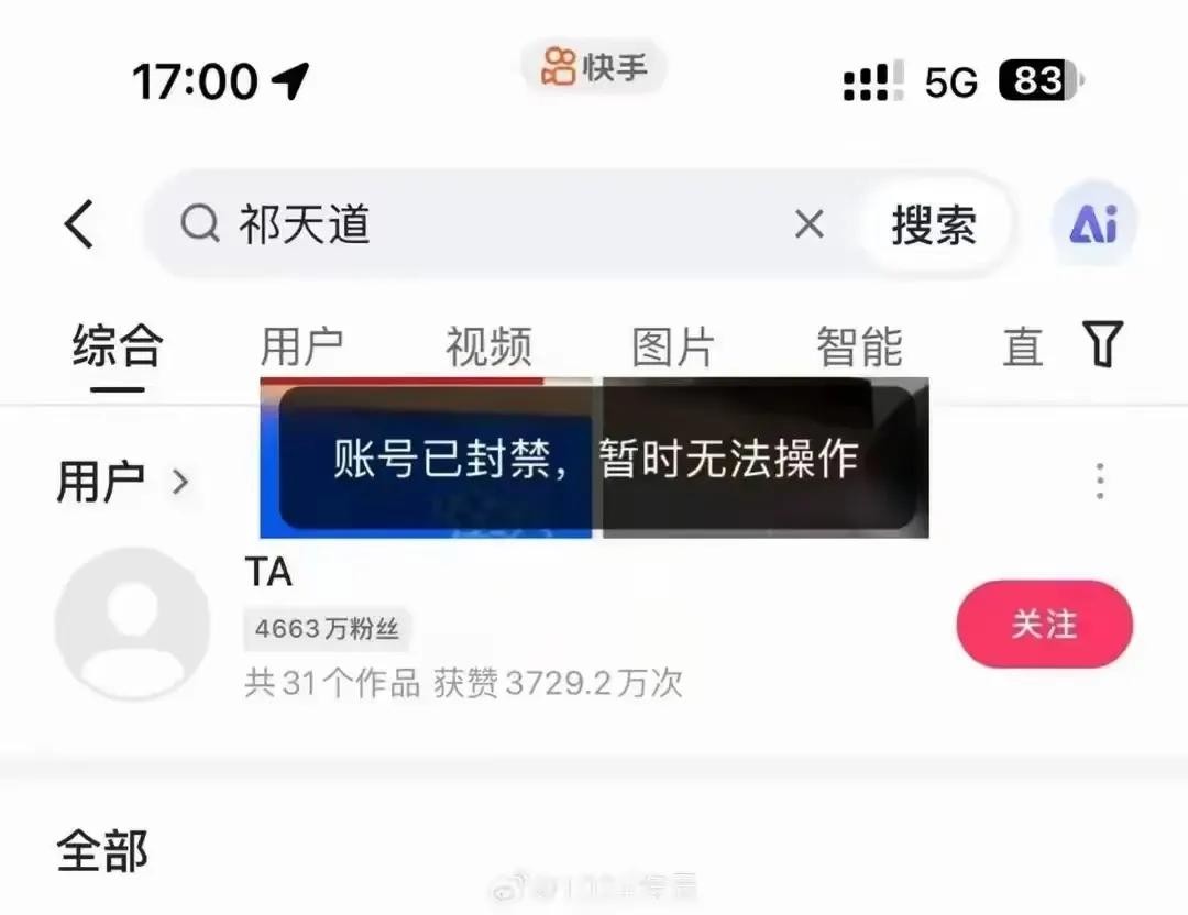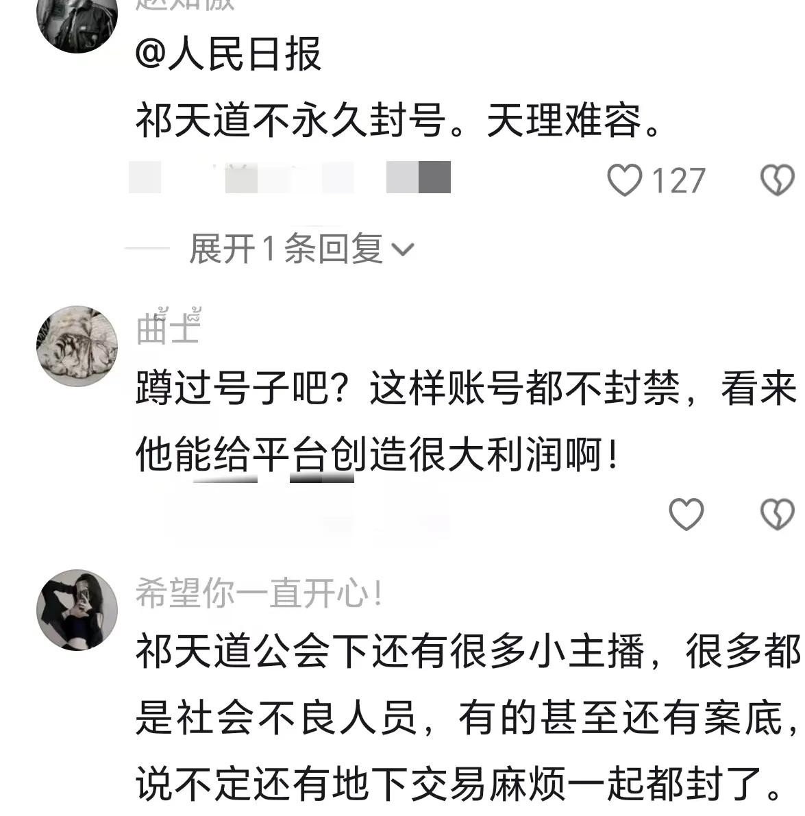 事情发酵后,平台对祁天道进行了封禁,公安部门对祁天道进行了刑拘。