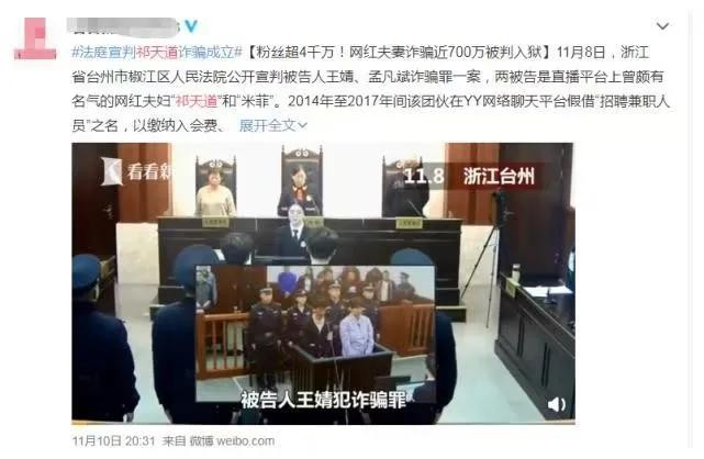 早在2019年祁天道和他的媳妇米菲就因诈骗罪被判了4年,并处罚款6万元。