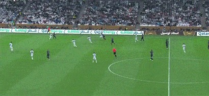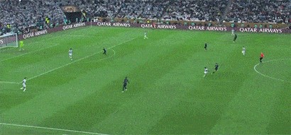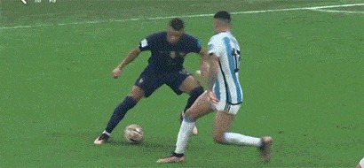 但梅西拿球后失误掉球了,法国队推反击,几秒钟后,恩佐追防到本方禁区前,迫使马库斯-图拉姆做出威胁最小的选择——传球给左边的姆巴佩。