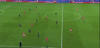 恩佐不光会横向转移,也能往前传。同一场比赛的第10分钟,他就用一记精准的长传制造了进攻威胁。