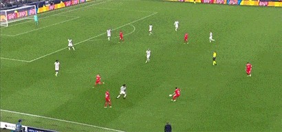 后者利索地连停球带转身,抬头稍作观察,送出一脚精准的斜长传,找到左路无人盯防的迪马利亚。