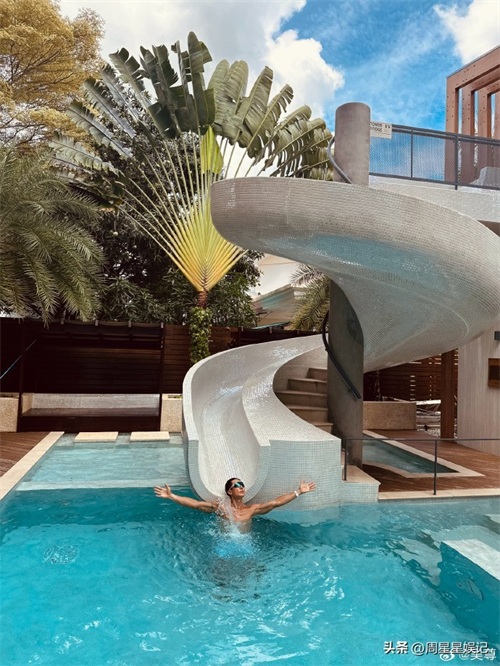 意外曝光家里豪宅,配有游泳池?夏日怎么能少得了室内游泳呢?