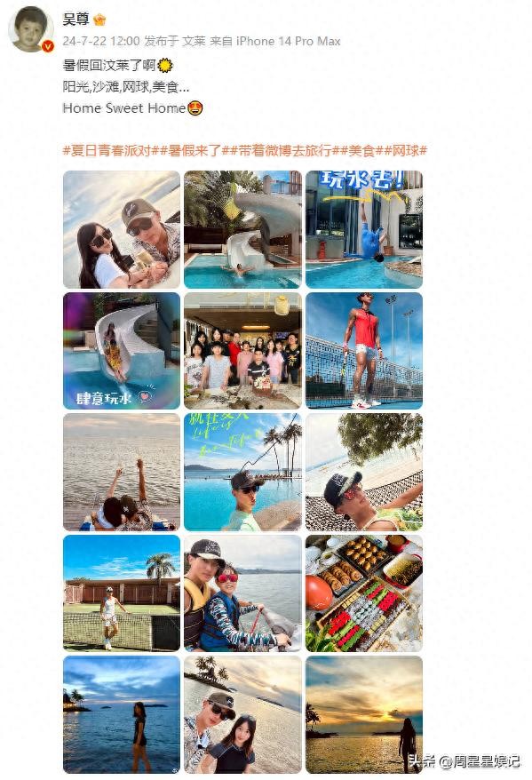 吴尊放暑假带着女儿neinei跟儿子max回文莱过暑假了。看来大家都有恋家情结,回到家再社交媒体的发文配图,明显感觉心情愉快、高兴,感觉家乡阳光、沙滩、网球、美食一切都是如此的幸福、如此的甜蜜。