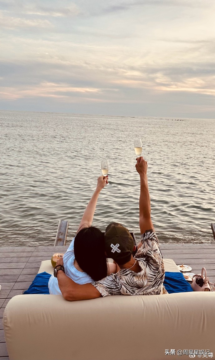 妻子林丽吟甜蜜的跟丈夫吴尊依偎在一起,享受着难得的二人世界甜蜜时光。惬意的喝着小酒,一起欣赏着大海、阳光、云朵形成的自然美景。