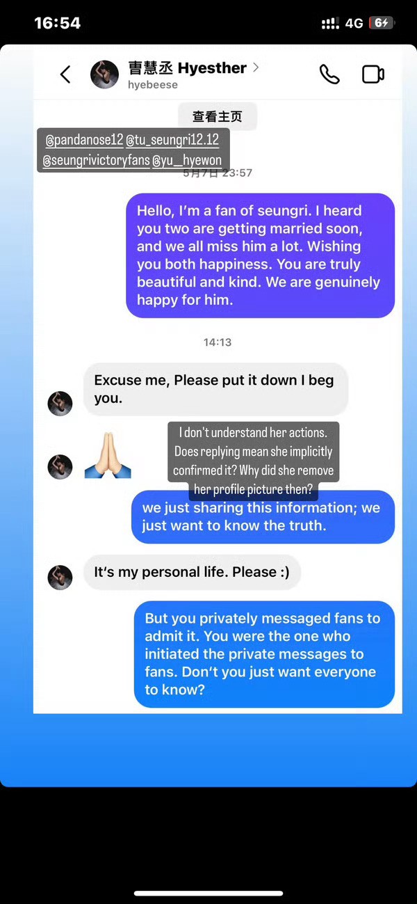 而他的新女友,据说是位小网红,她的Instagram上,对网友的私信并没有否认这一猜测,反而大方地展示了那枚戒指。这一行为,无疑是在向世界宣告,她与李胜利的关系非同一般。