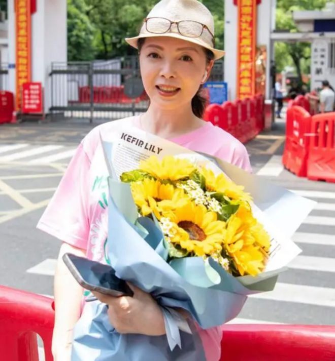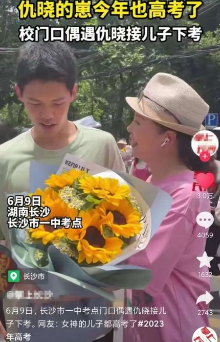 近日,她被网友拍到在高考现场接儿子的照片。