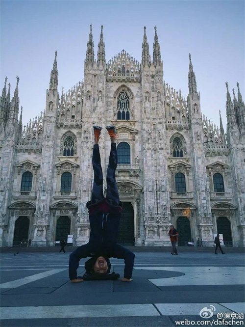米兰大教堂前的倒立↓