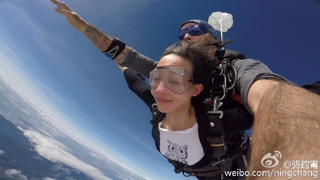 除了是陈意涵的好闺蜜,最近张钧甯因为参加《跟着贝尔去冒险》的录制,也成了大张伟一路绑定的高能老师。作为节目中耐力最好,体力最好,性格也佳的代表人物,钧钧老师平时也是个酷爱运动,经常旅行的年轻人呢~跟陈意涵不同,张钧甯的旅行打卡照是从跳跃开始的……