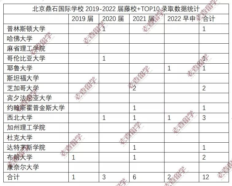 北京鼎石国际学校2019届-2022届早申藤校+TOP10