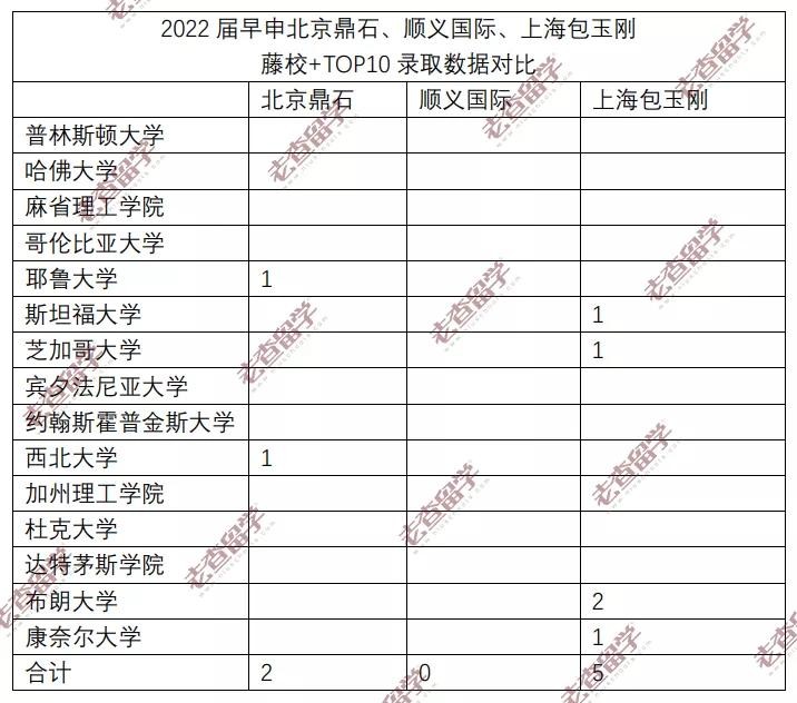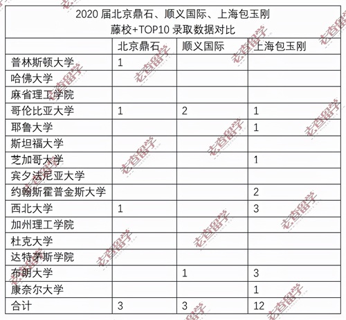 北京鼎石与顺义国际、上海包玉刚录取结果对比