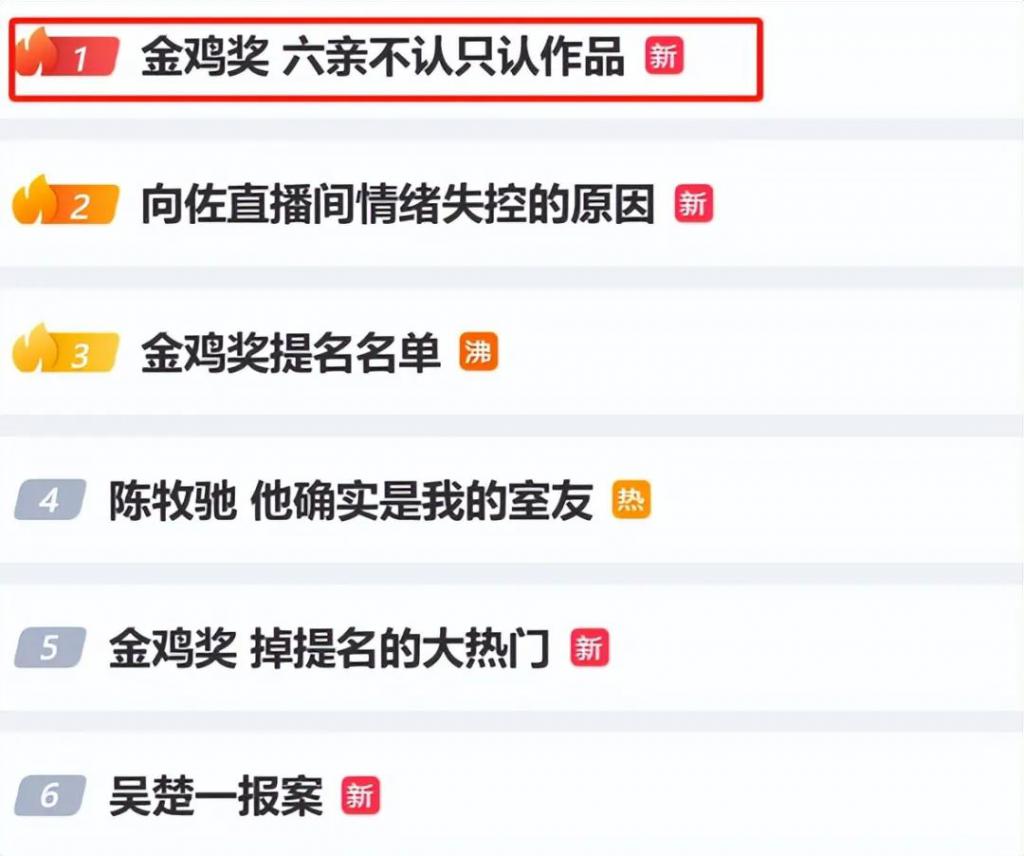 恰好,热乎的热搜第一" 金鸡奖六亲不认只认作品 "也证明了这一点。