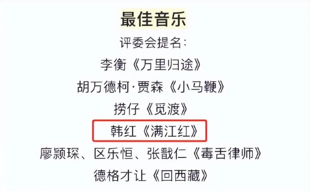 《满江红》狂揽 45 亿票房,这回仅有雷佳音入围男配,韩红的《满江红》提名最佳音乐。