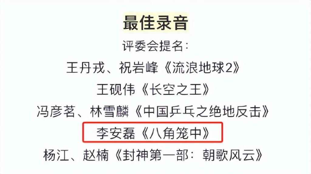 我在入围名单中仔细寻找它的身影,甚至反复检查后才能确定《八角笼中》真的就一项提名,而且还是最佳录音。