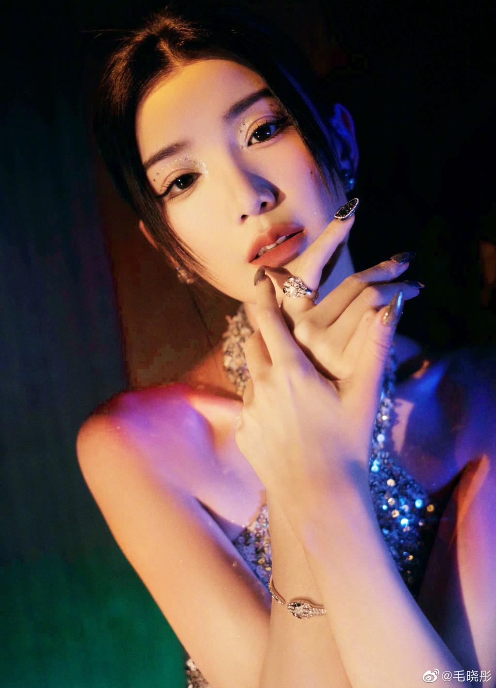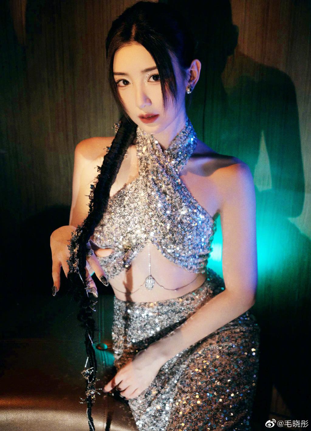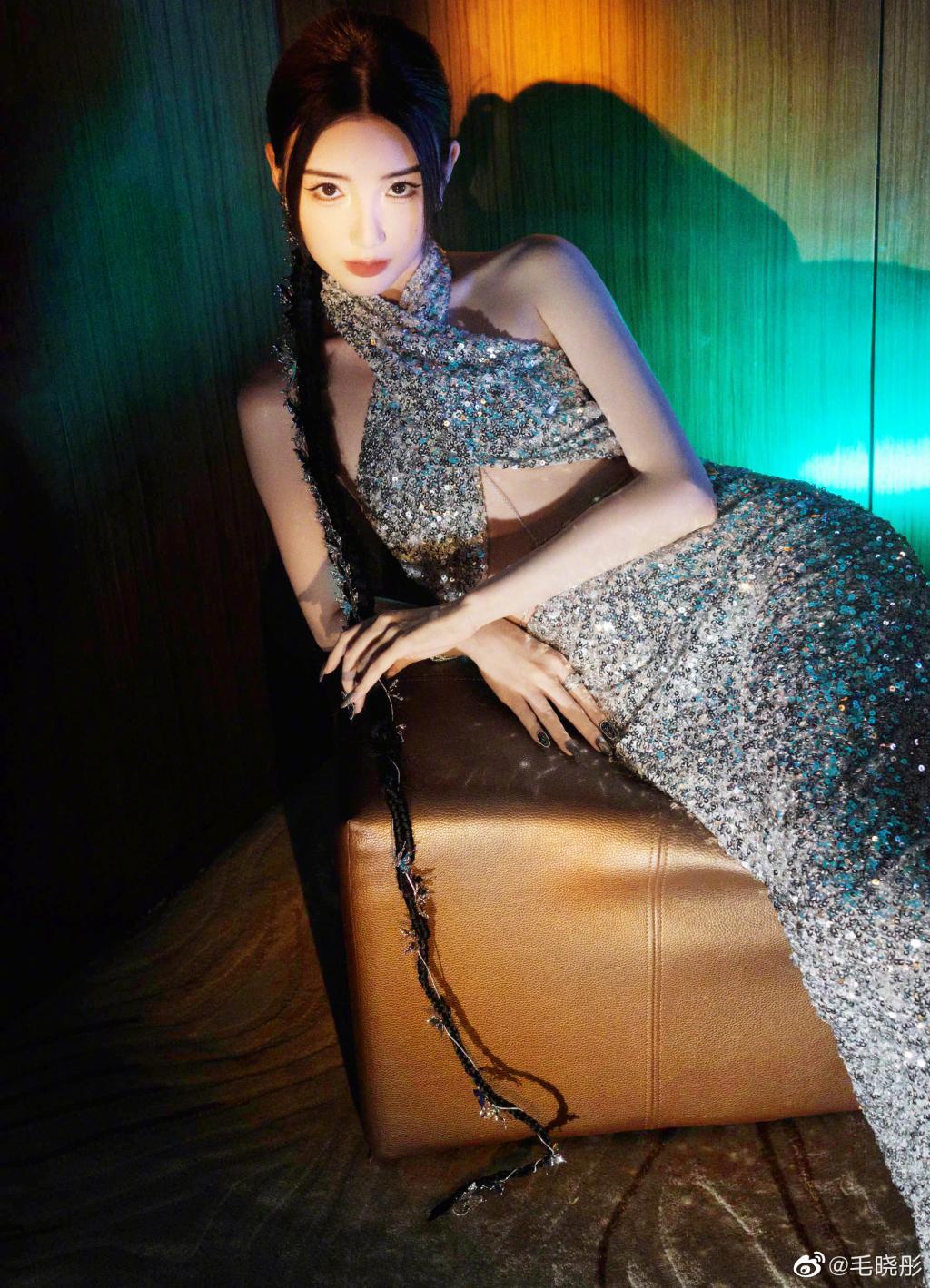 毛晓彤的一组美照曝光,她一改往日甜妹造型,穿银色亮片裙露出细腰,梳超长蛇蝎辫又酷又甜。
