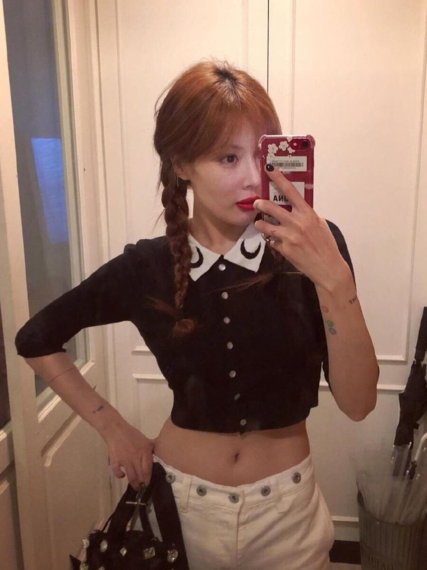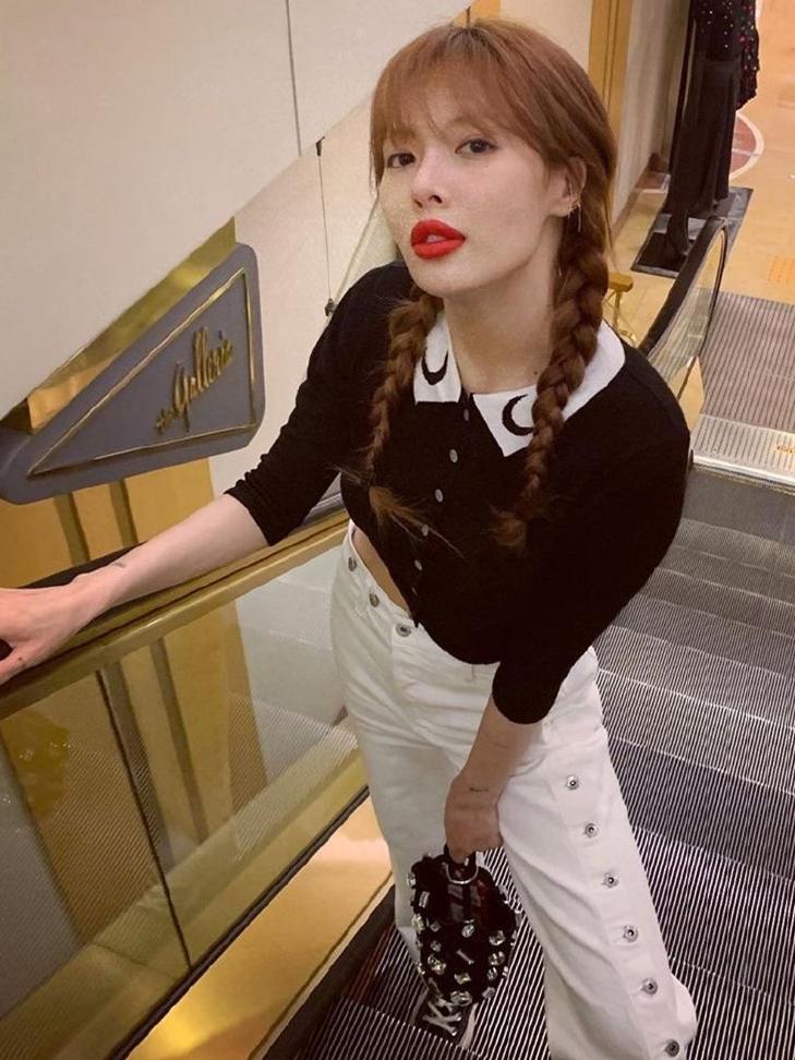 不得不说,泫雅这次一样是麻花辫的造型搭配,整个人也的确是少女感满满,而泫雅更是不愧是公认的时髦精啦,虽然身高不过162cm,但她的确能靠着穿搭搭配出各种风格的造型来。