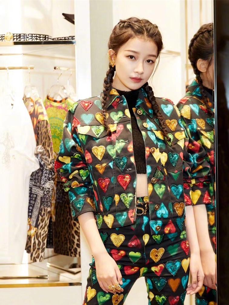 像最近孙怡现身某活动现场时的造型就非常在线,看孙怡这一身彩色爱心印花的套装造型上线,内搭上一件黑色的紧身背心,倒也是显高显瘦得很,而同时孙怡这回还选择了绑上一双麻花辫的发型,更是少女心十足啦。