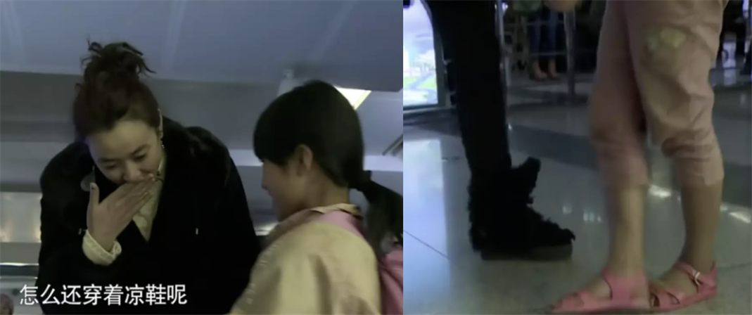 而吴丽在机场看到身穿凉鞋怯生生站在自己面前的李勒优,可以说在一瞬间就感到了心痛和怜惜。