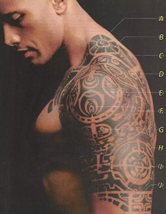 强森身上的这个复杂的图腾纹身,每个部分都有不同的含义哦!