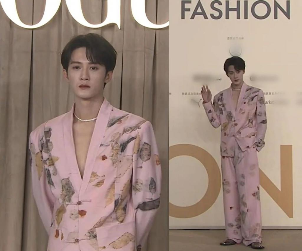 长相俊美的檀健次穿了一套粉色墨画西装,站在红毯上他就是时尚的男明星,站在发廊里他就是技术最牛的 Tony,站在村口他就是最喜庆的小伙子。