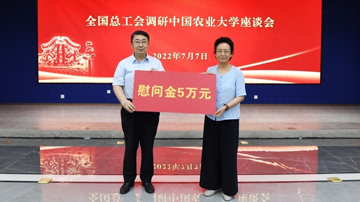 座谈会开始前,谭天星一行参观了食品科学与营养工程学院、工学院工会小家,调研基层工会工作,看望慰问了学校市级先进工作者代表,动物科学技术学院教授杨宁和食品科学与营养工程学院教授范志红,并参观了中国农大办学成果展和初心弥坚——中国农大许党报国的红色故事展。