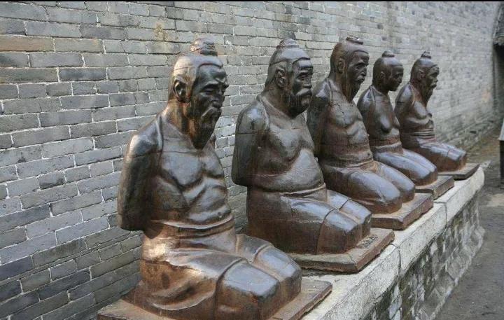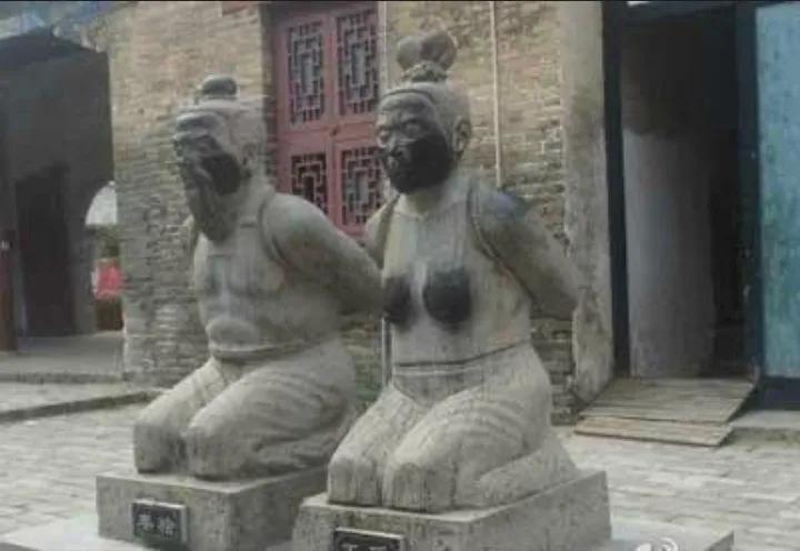安徽亳州岳飞庙前的秦桧及其夫人王氏跪像