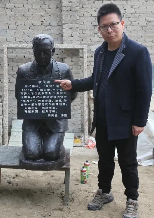 效仿千古奸臣秦桧的构形,当代叛国者、汉奸余茂春,向中国人民忏悔的跪像,引人注目。