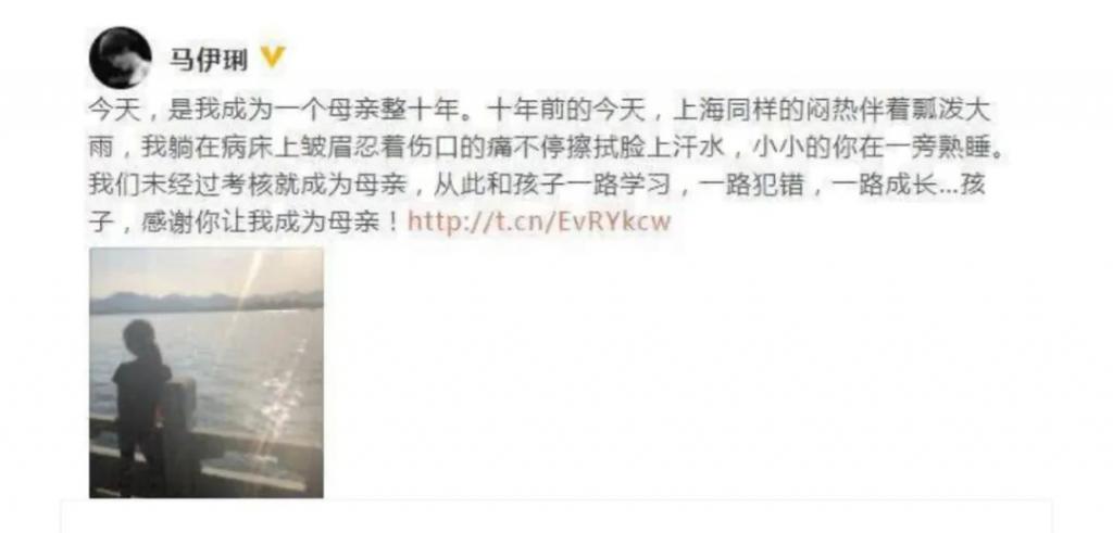 在爱马十岁生日这一年,马伊琍发文 " 感谢你让我成为母亲 "