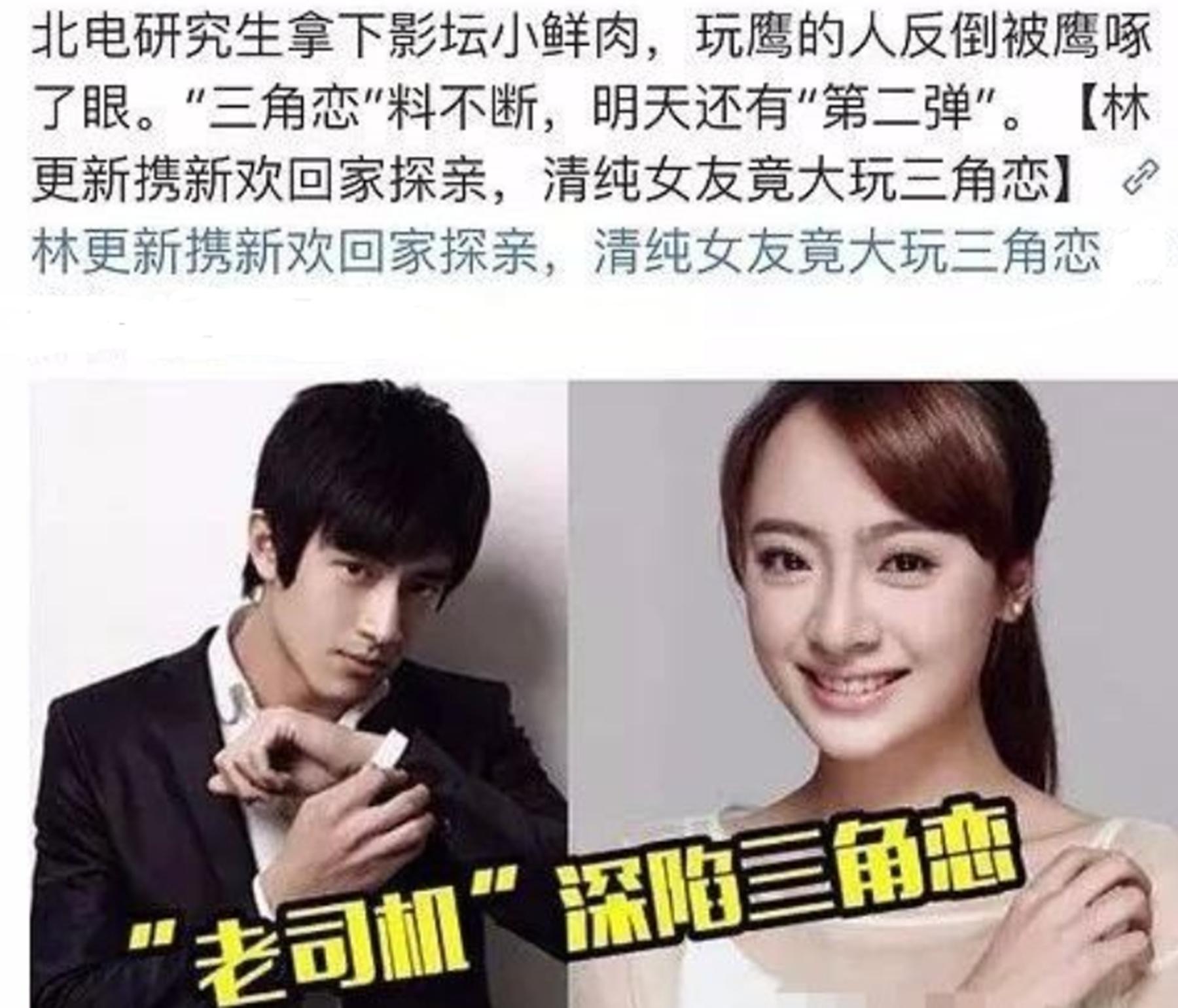 然而,这场闹剧刚结束不久,林更新就又跟另一位女星传出了绯闻。
