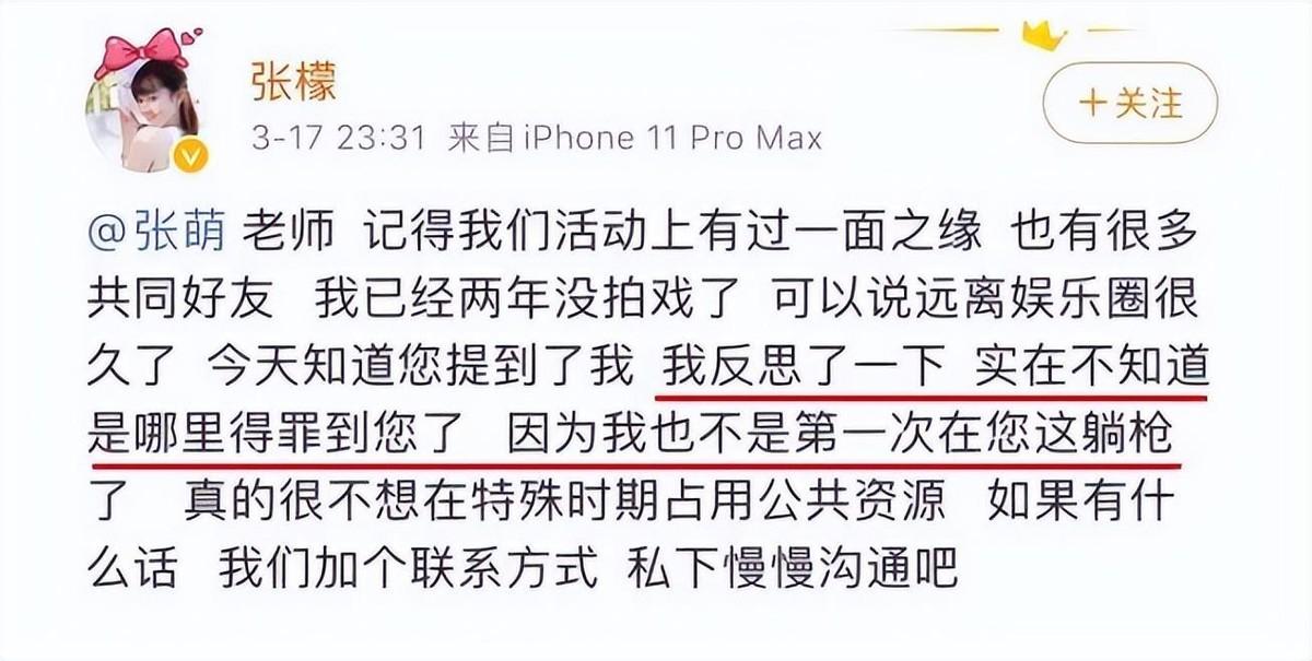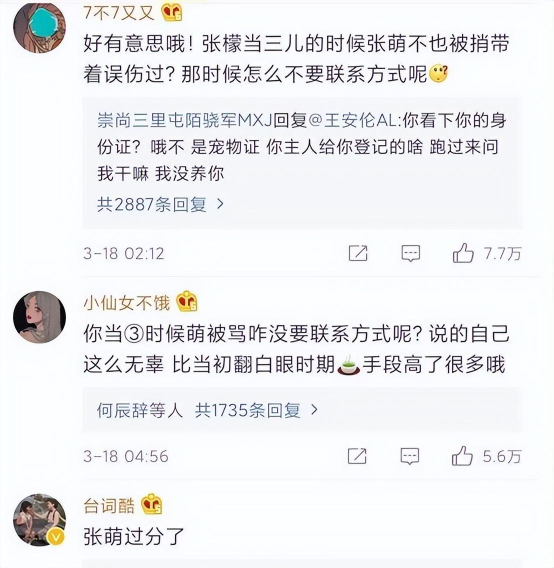 当初张檬陷入第三者的风波时,就有网友跑到张萌的社交平台进行辱骂。
