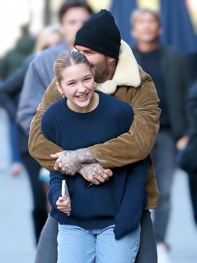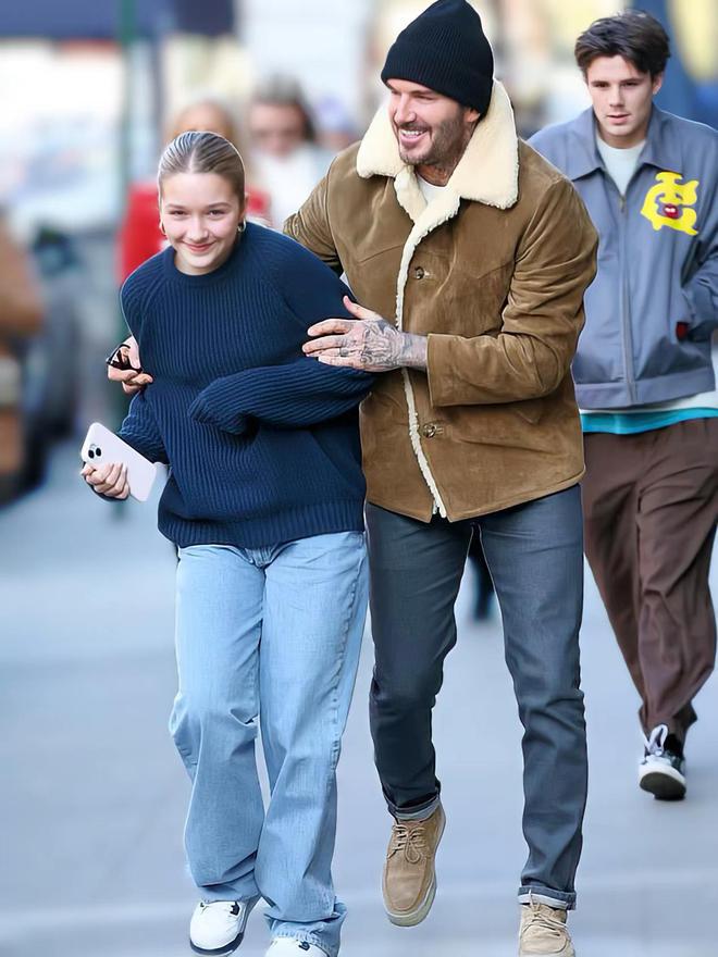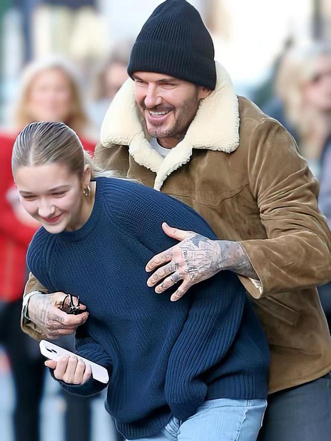 小七长大了,亭亭玉立!老父亲贝克汉姆,一脸孩子气的打打闹闹