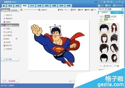 5:在面板里控制假发的方向和大小,到逐渐合适,然后保存图片即可。(果然超人还是传统的那个发型要帅气得多)