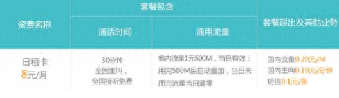 移动8元日租卡怎么收费 1元500M未用完当日清零