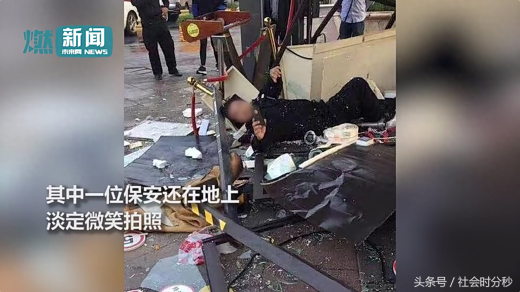 通过监控视频可以看到,一辆红色轿车在行驶到小区门口的时候,突然开始加速,然后快速拐弯,一头撞进小屋门口的保安亭,把保安亭都撞穿了。当时亭子里有两个保安,所幸两个人受伤并不严重,人们赶来救援时,其中一个还淡定地躺在废墟里自拍,令人哭笑不得。之后受伤保安被送往医院,目前状况良好。